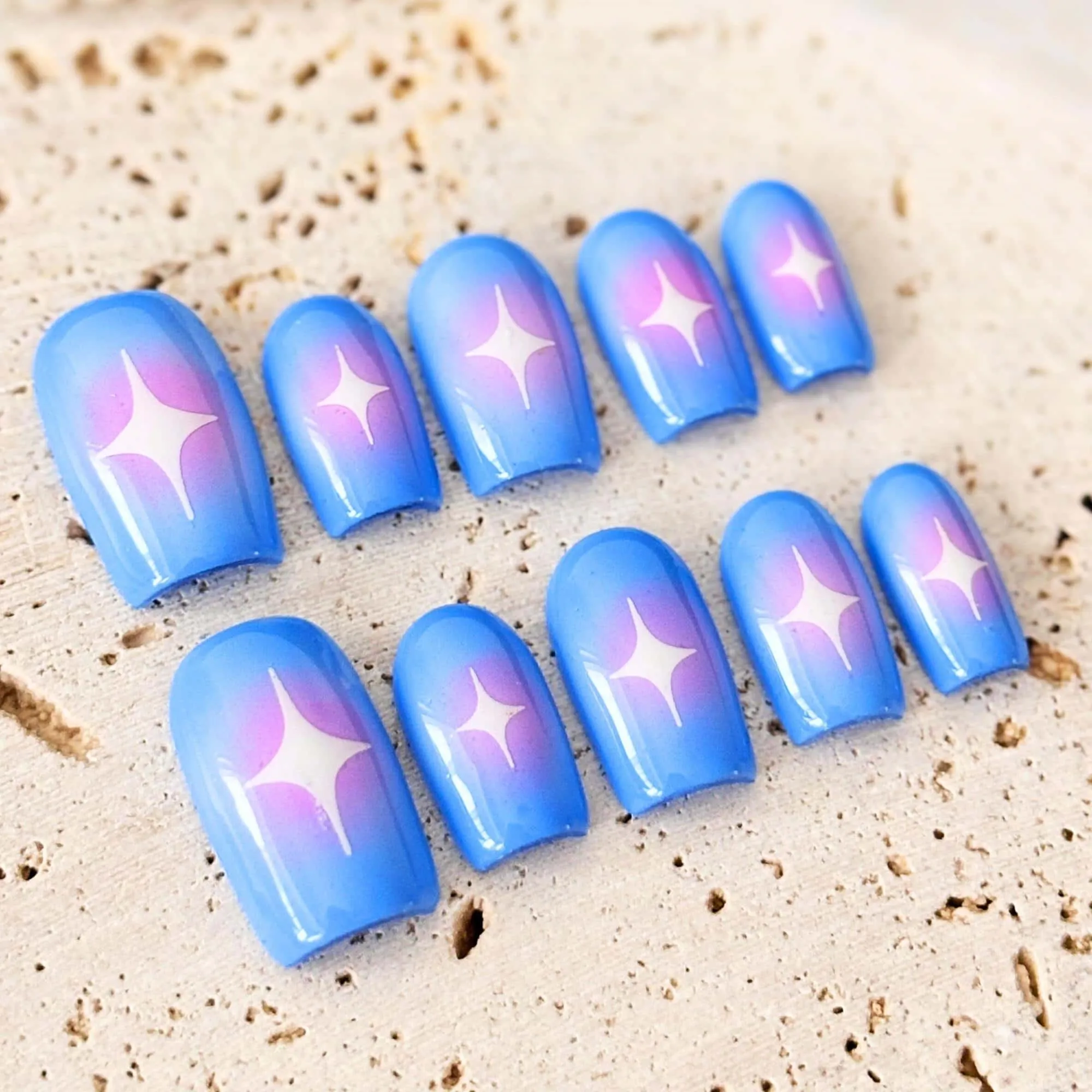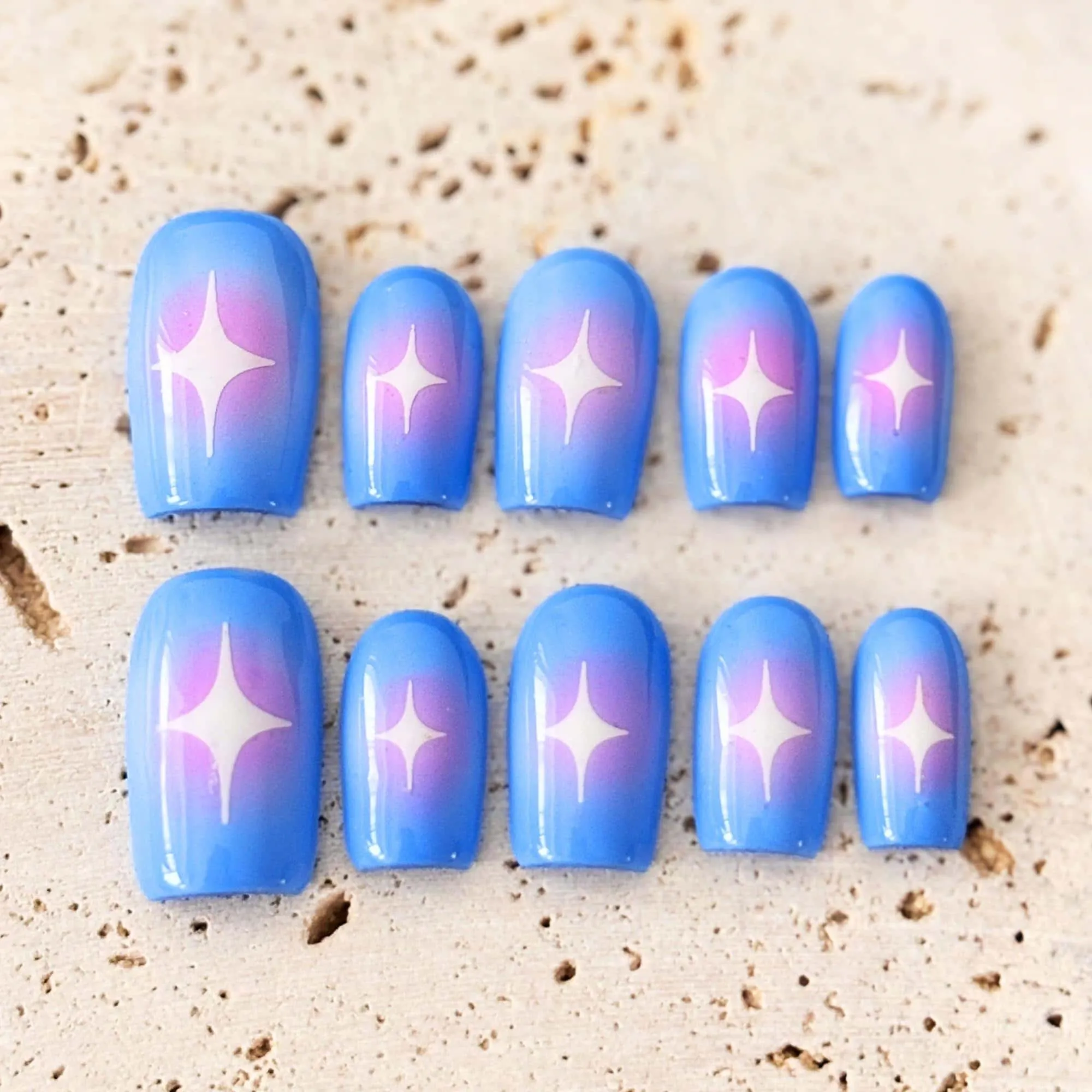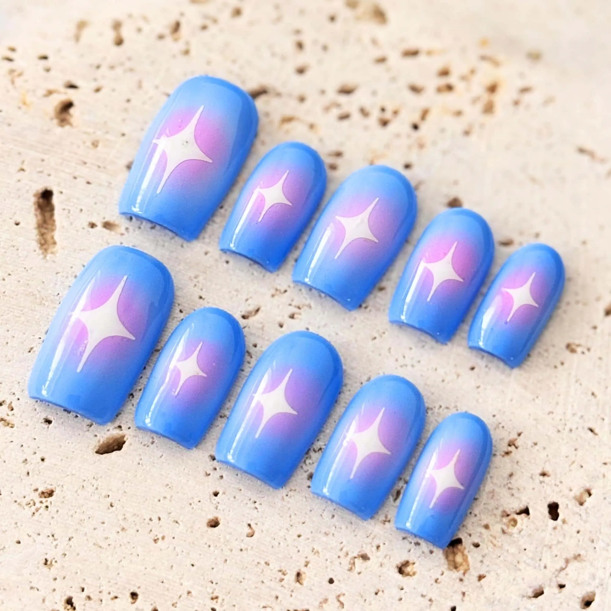 Blue Ombre Star Press On Nails: Handmade Reusable Party Nails