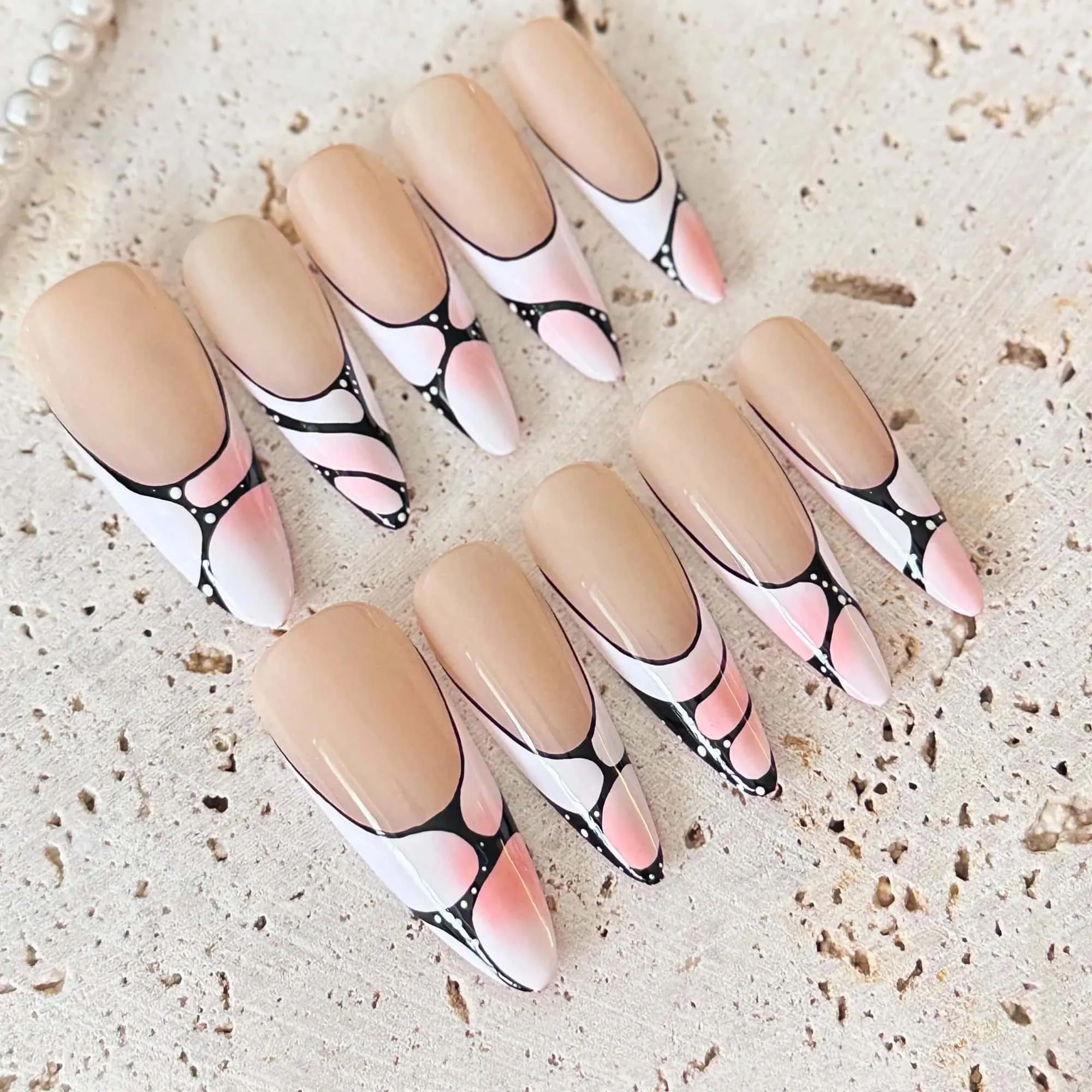 Elegant Gradient Press On Nails – Pink White Stiletto – Modern Abstract Nail Art