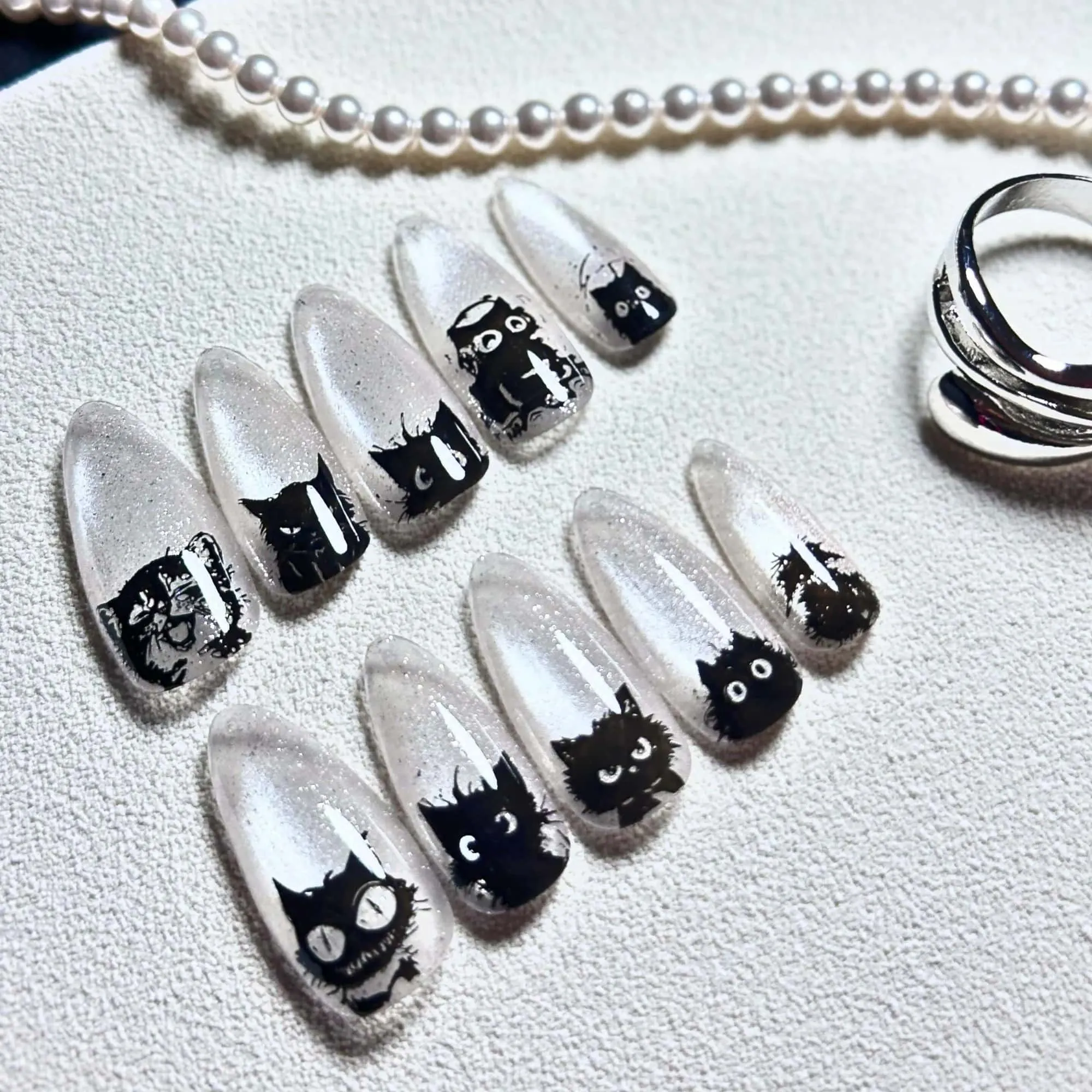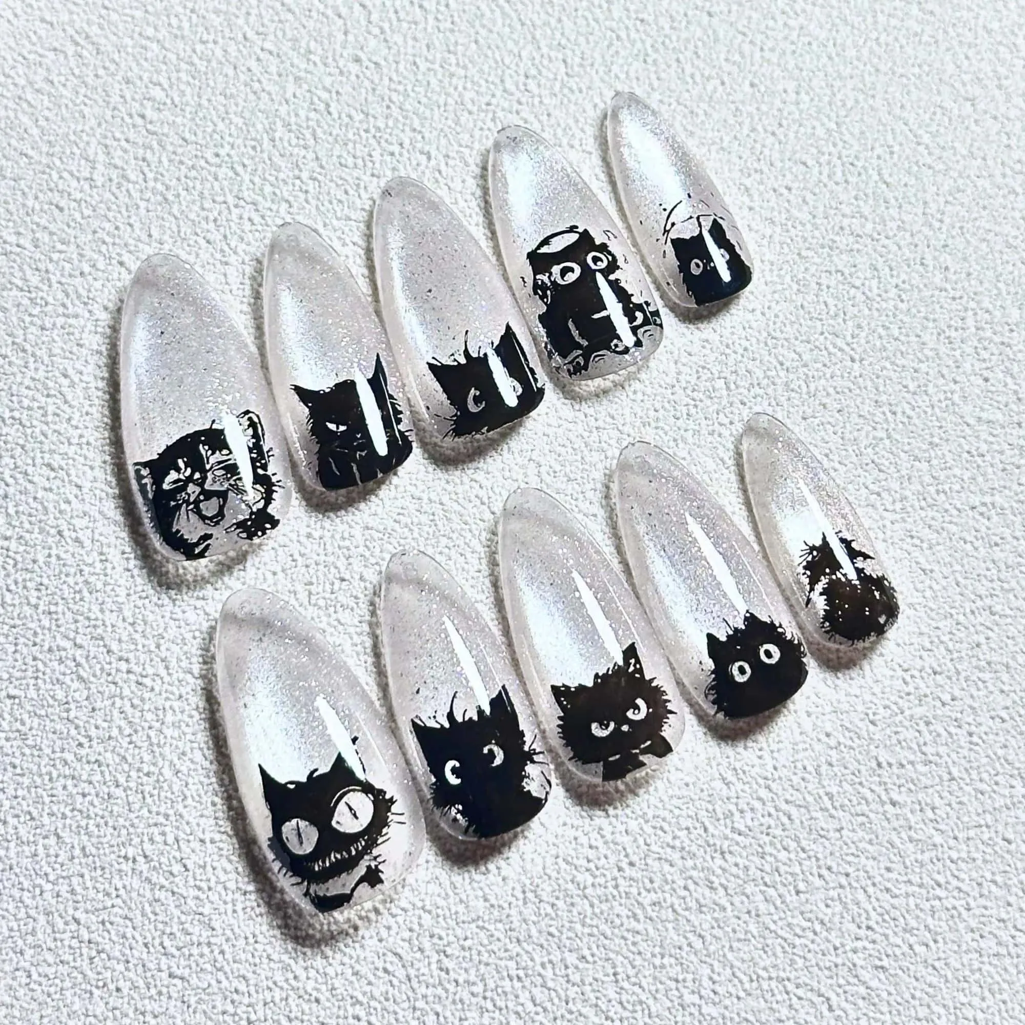 Obsessed with these Crystal Clear Cat Eye Short Press Ons. Handmade to perfection. Perfect for Halloween or any time you want to serve a little mysterious glam. Treat yourself or surprise your bestie as a gift – either way, you gonna love it!