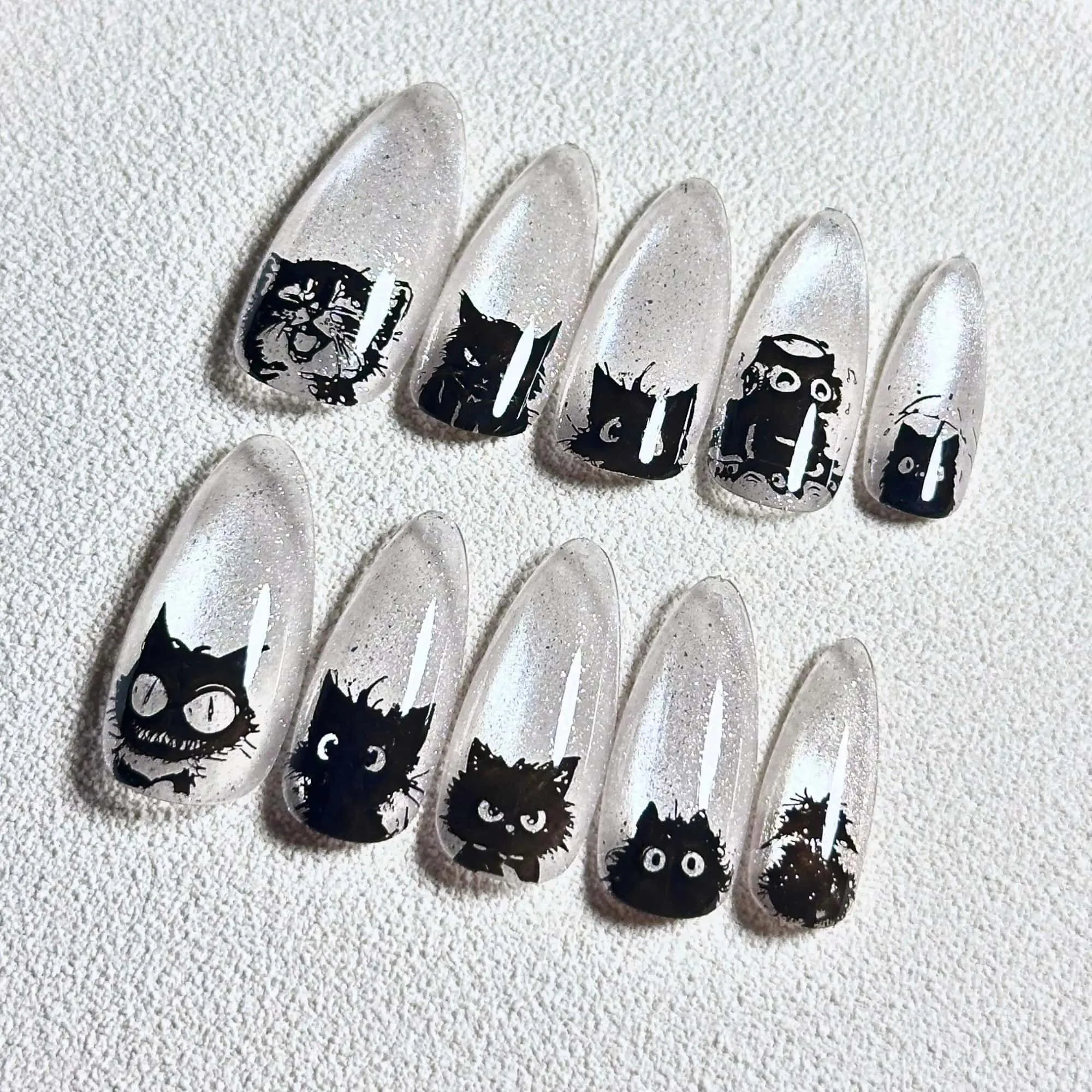 Halloween Cat Eye Press On Nails: Handmade Black Cat Nail Art