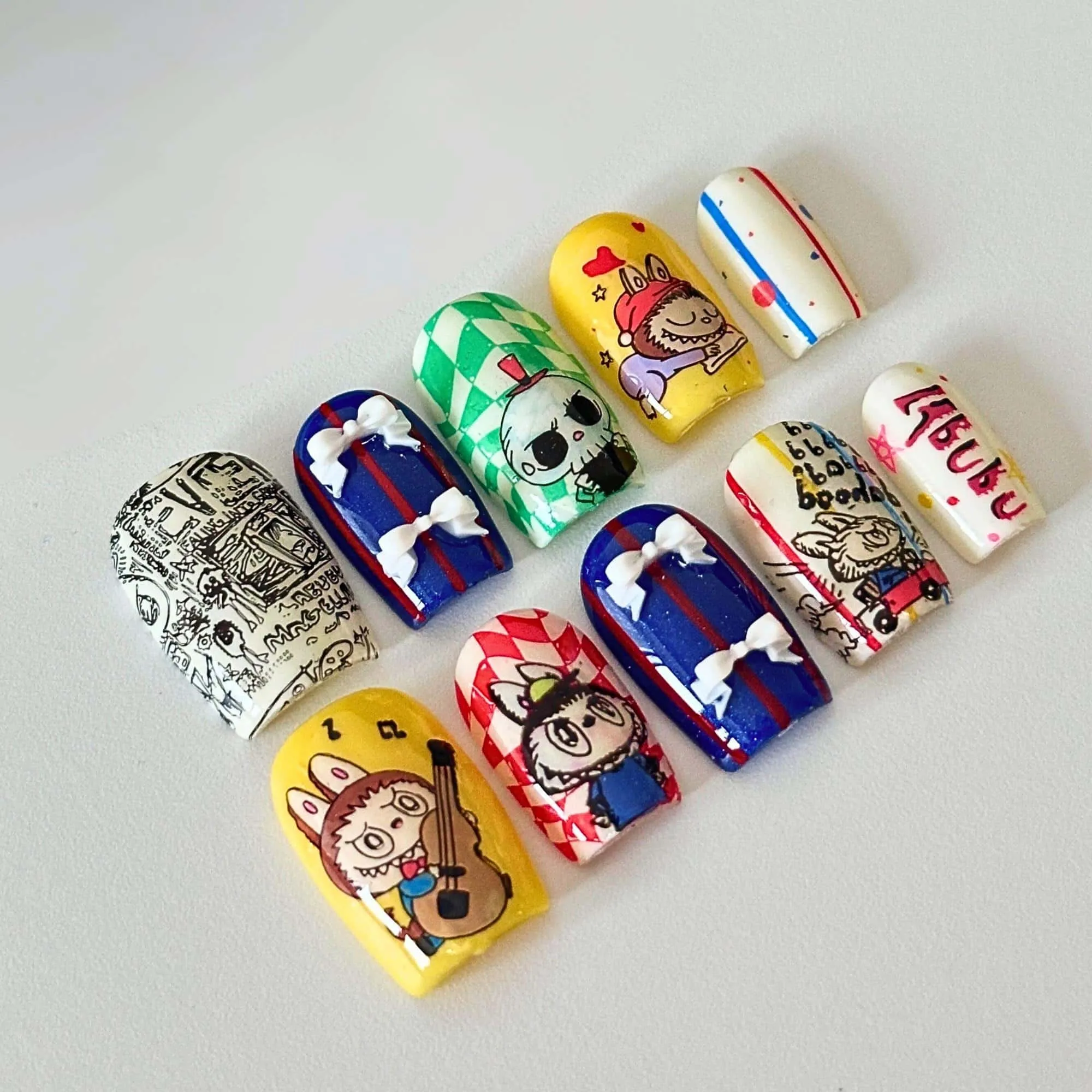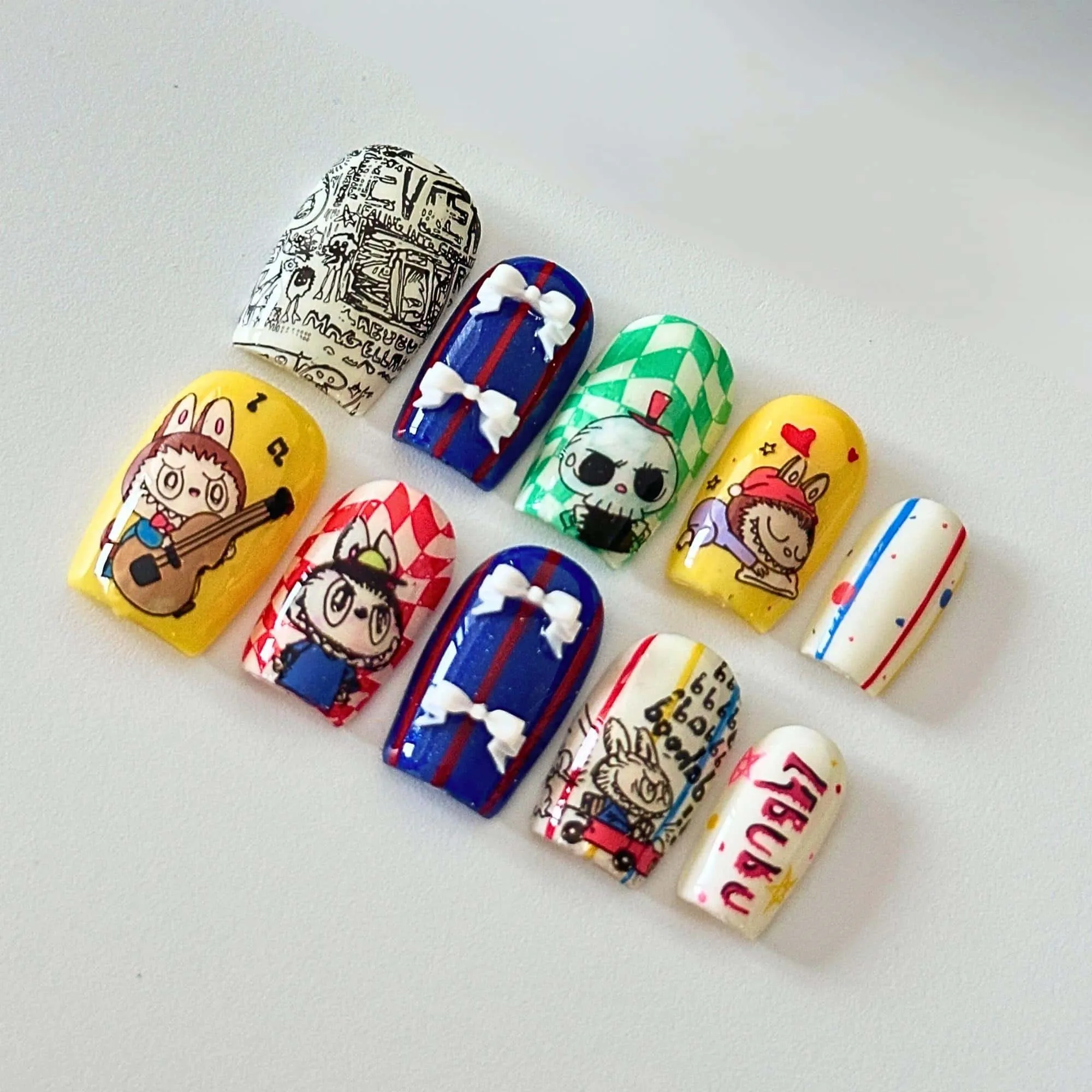 Labubu Press-On Nails: Handmade Cartoon Nail Art, Y2k Style
