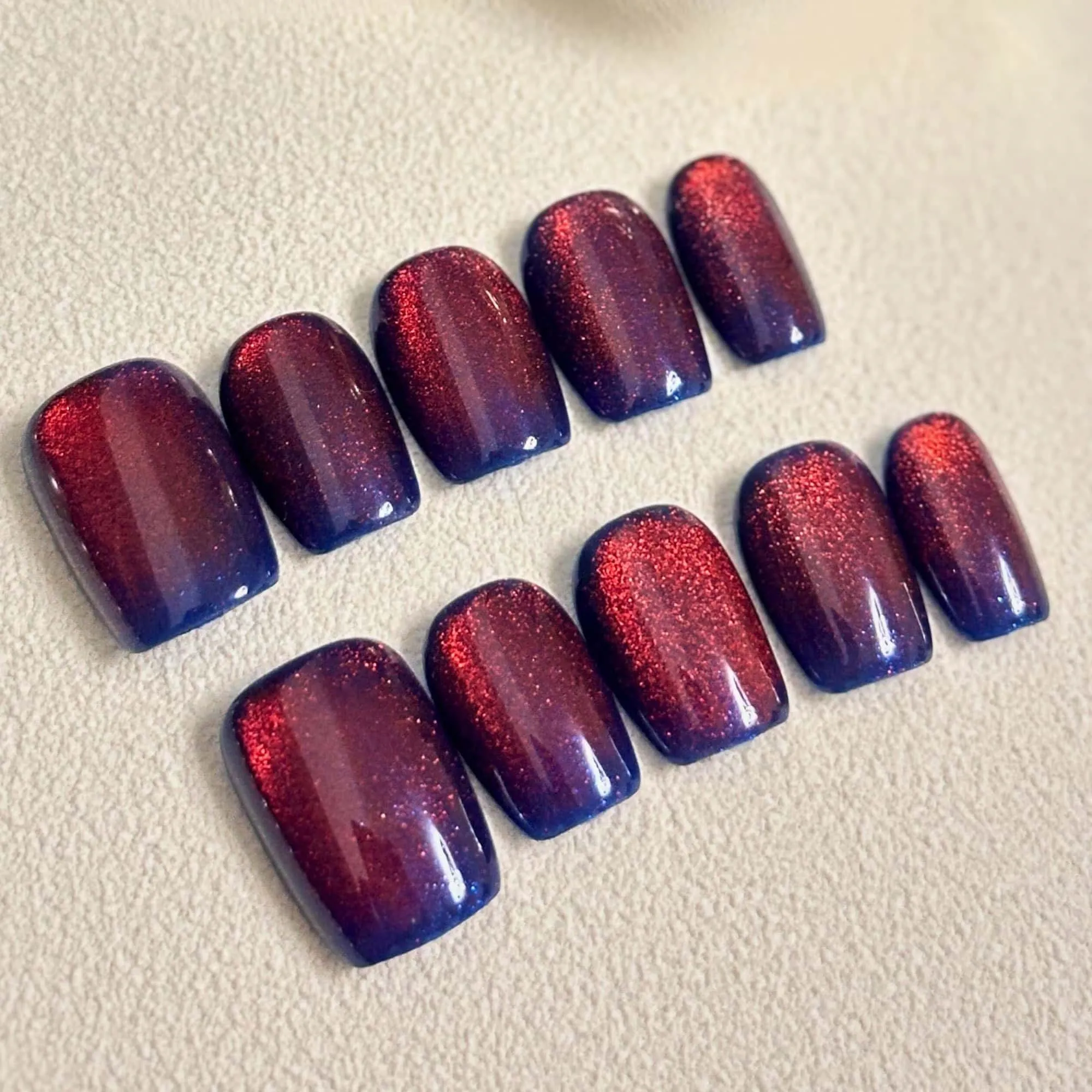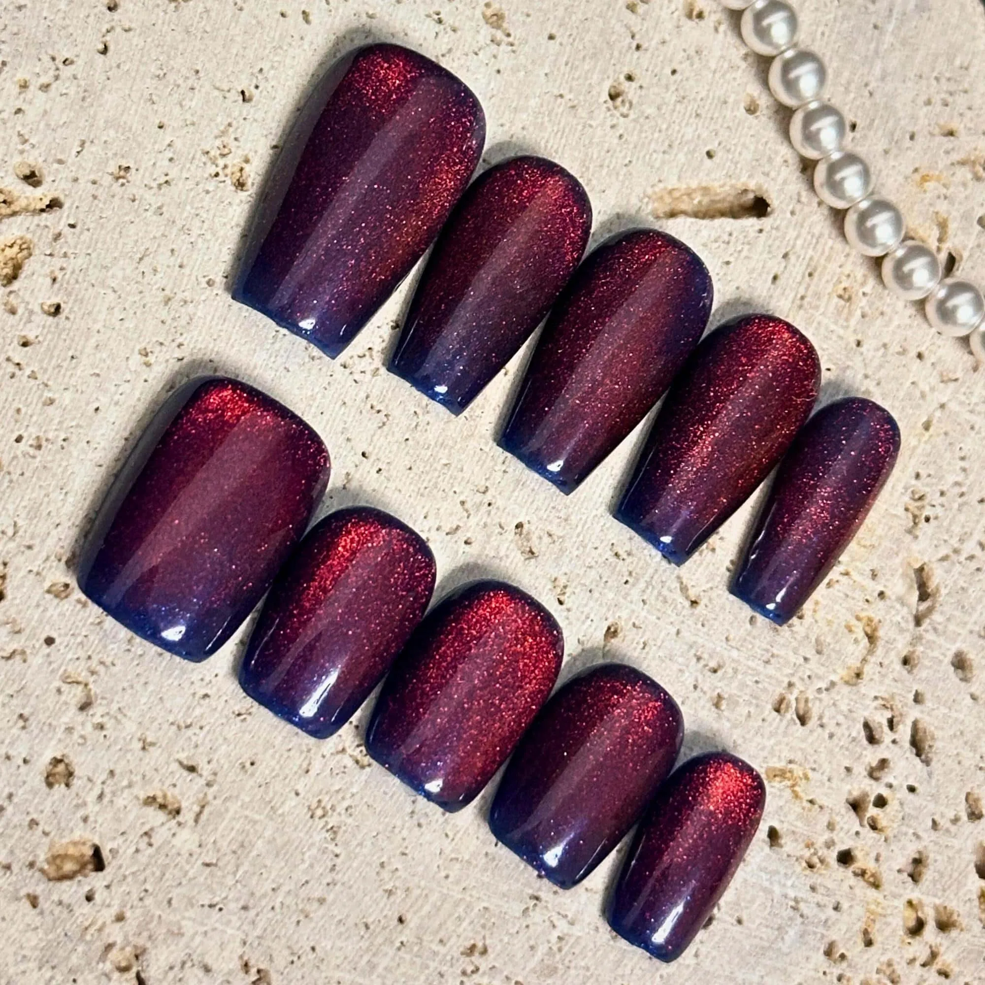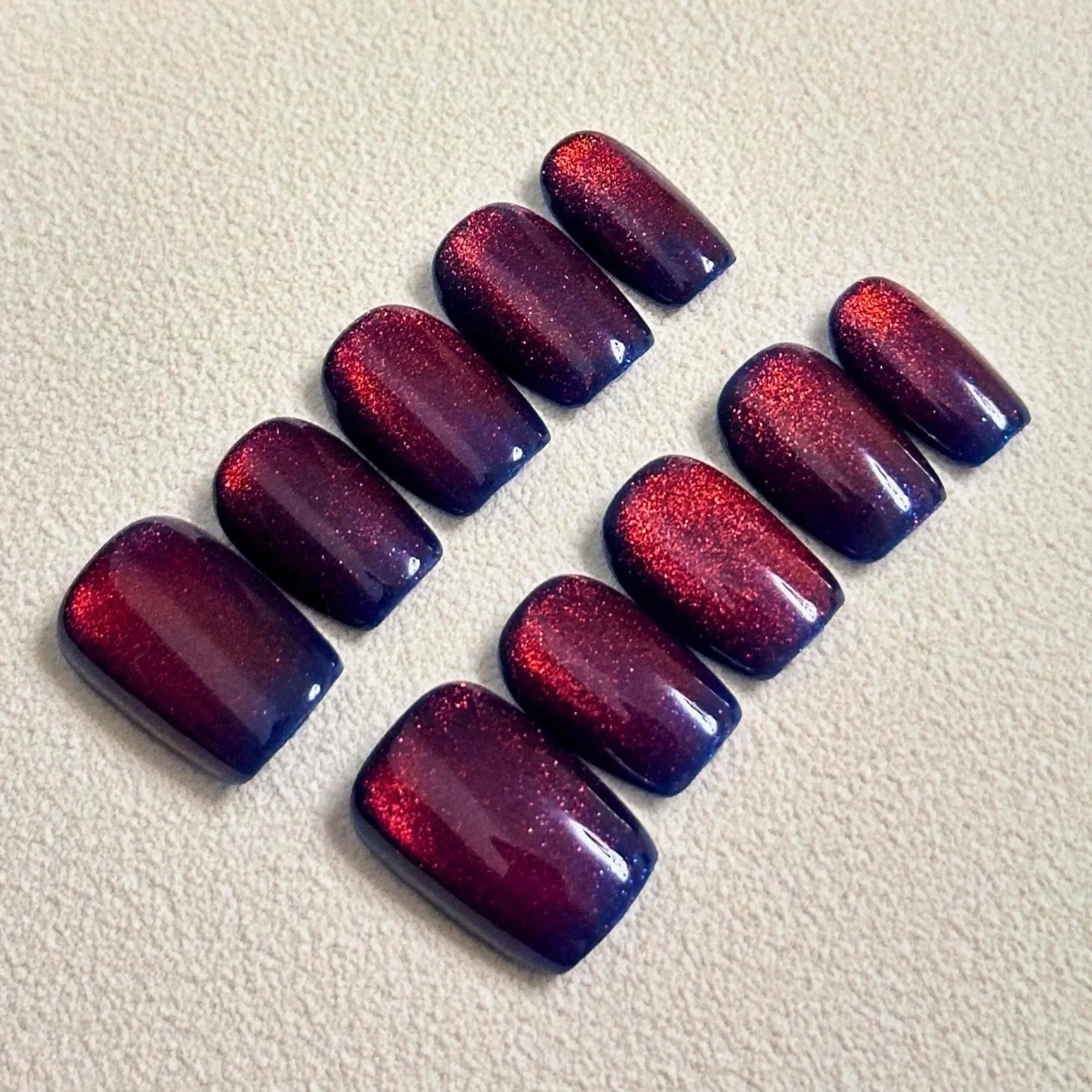 Red Cat Eye Press On Nails: Handmade Cosmic Galaxy Nail Art Set