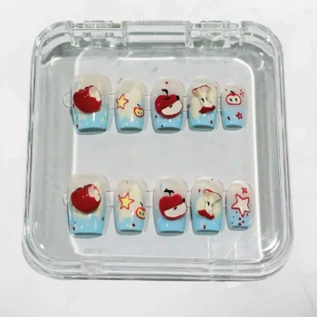 3D Apple Press-On Nails: Kawaii Cartoon Nail Art Set $43.95