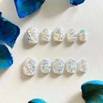 Get ready to dazzle with our Aurora Ice Crystals Press On Nails! Perfect for Fall and Halloween, these reusable handmade fake nails are a stunning gift for her. Stand out with these unique nails that sparkle and shine like ice crystals on a chilly day!