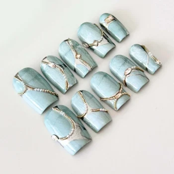Lead the way this Halloween with our Year of the Snake Press On Nails! Featuring stunning 3D design in gold, these gothic Y2K nails are handmade and reusable, perfect for the season. Stand out at the Halloween party or gift them to a nail art enthusiast!