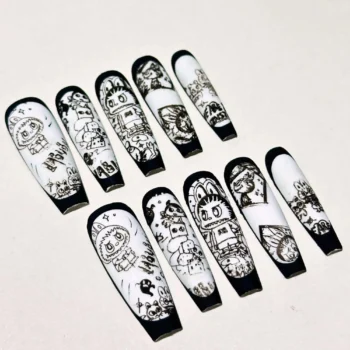 These A Labubu press-on nails are handmade and feature a cute design inspired by the beloved character. Each set includes detailed nail art with a playful, cartoon style, some Y2k vibe as well. Easy to apply and comfortable to wear, they’re great for everyday use or as a fun accessory for fans of A Labubu.