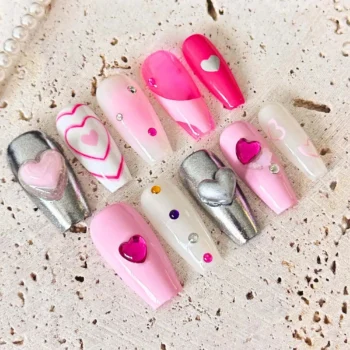 Elevate your nail game with these Romantic Pink Chrome Press On Nails! Featuring beautiful Love Heart Nail Art, each set is meticulously handmade for a flawless finish. Perfect for Date Night & Parties.