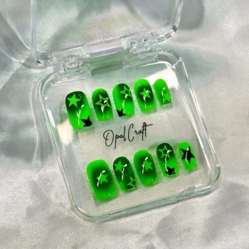 Elevate your edgy style with our Cyberpunk Silver Green Press On Nails! Handmade with striking black & metallic details, these false nails are perfect for adding a futuristic touch to your look. Stand out from the crowd with this unique and eye-catching nail set.