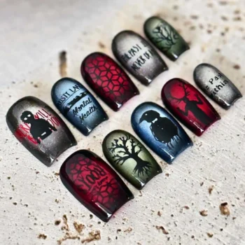 Gothic Halloween Press On Nails with 3D Charms – Reusable Fake Nails $35.95